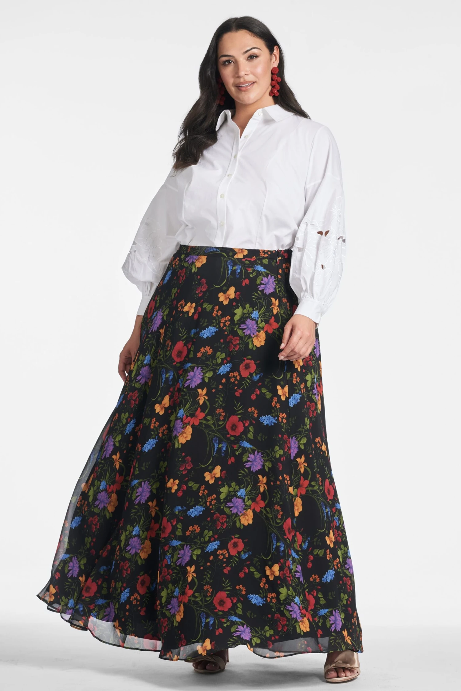 The Astor Top is a fashion essential that adds a unique touch to any wardrobe. It features an elegant, dramatic embroidered sleeve and princess seams for a flattering and refined fit. Its classic collar creates a timeless style that looks great for any occasion, and a romantic alternative to basic blouse.Â