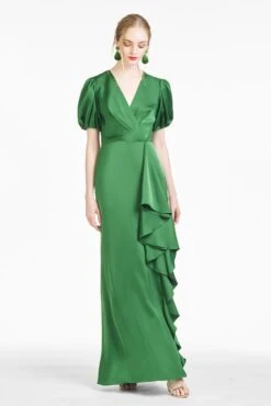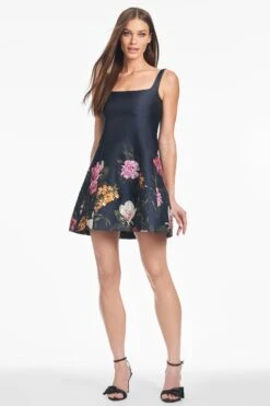 The Beau Gown in our custom Wild Sapphire Roses print. She is the perfect dress for any special occasion. The fit and flair silhouette is crafted in a chic matte faille, with engineered pleats at the skirt’s waist, an architectural detail that adds dimension and interest to the perennial style.