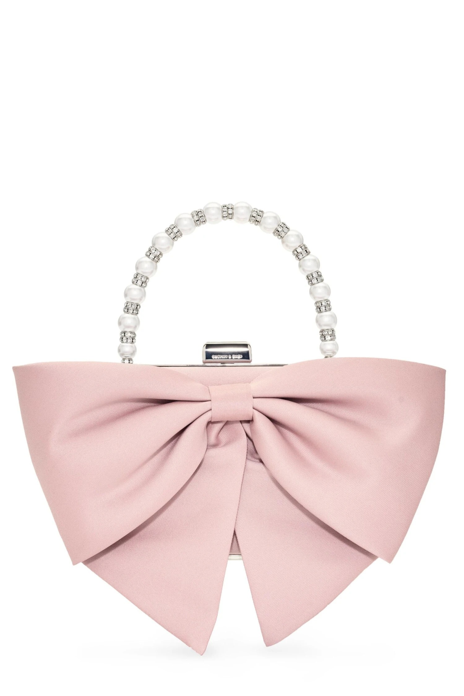 Introducing the Bubbly Bag, inspired by exactly what you would imagine. This fully-framed evening bag features a silver tone finish and an interior pocket. Its rich Mikado fabrication lends itself to luxury, while the pearl and crystal embellished top handle speaks to its timeless sophistication. The perfect companion to any fête.