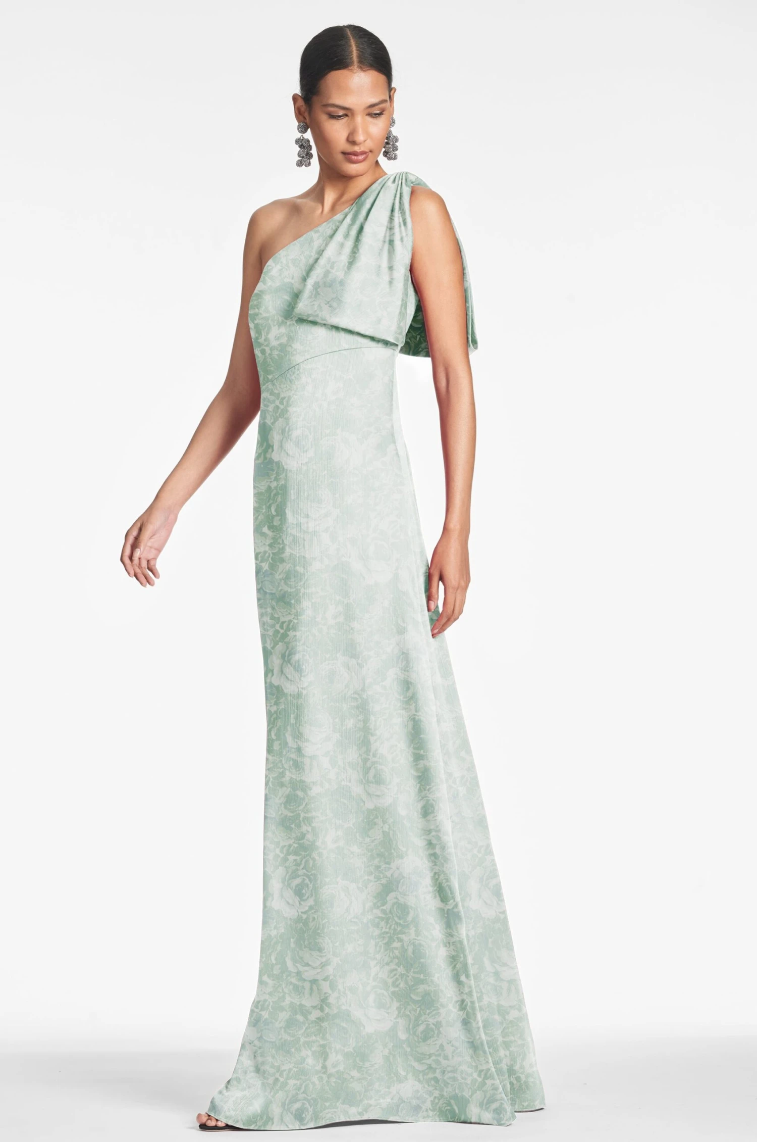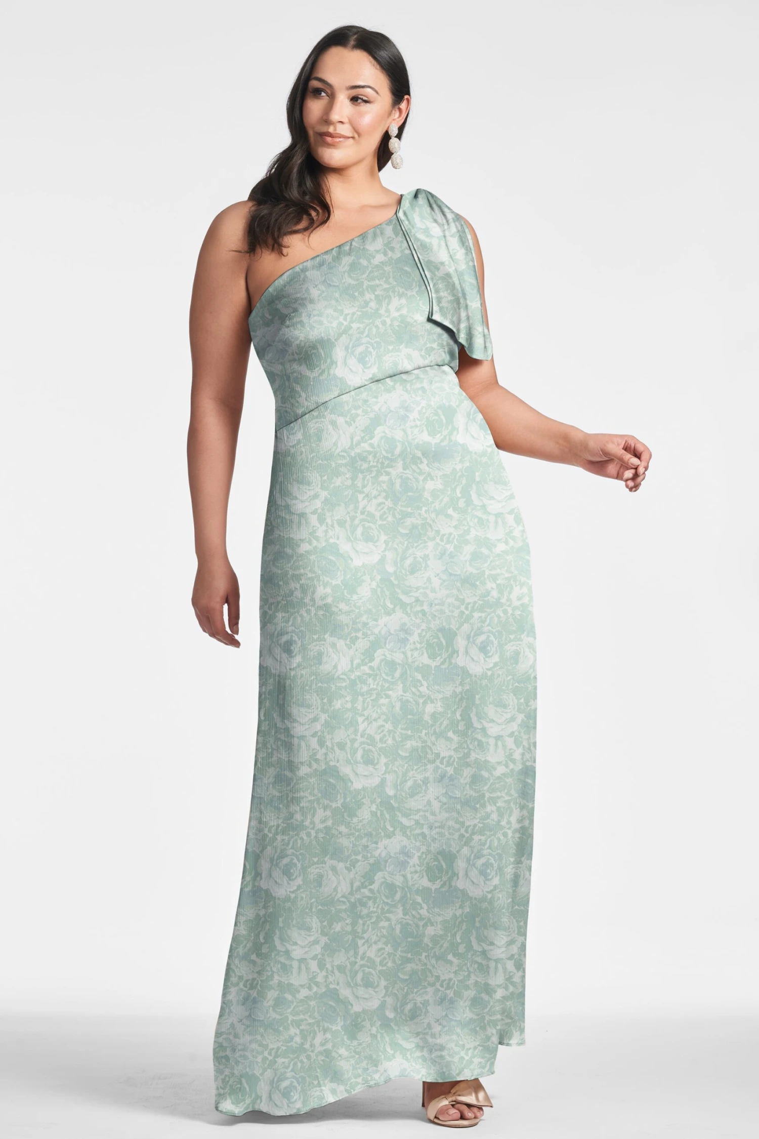 The Chelsea gown is an example of balance by design. A sleek sleeve of crinkle georgette is cut on the bias with an asymmetric seam at the waist, creating a column for curves. At the shoulder sits a hand-tucked, stitched-on collapsed bow. We design all of our Essential Social dresses with the intention that they can be enjoyed again and again. After all, a beautiful dress should be worn often and well.