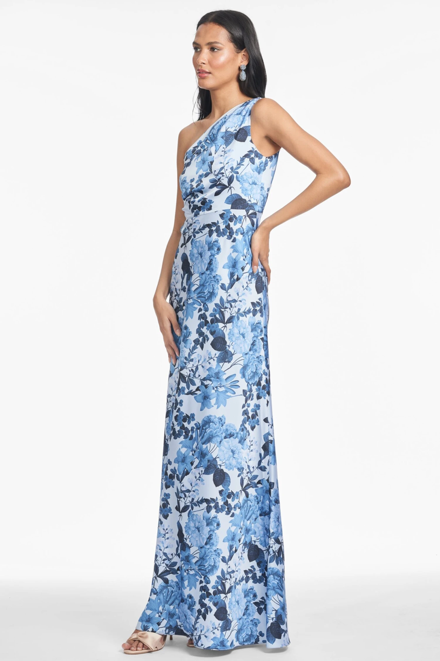 Delphine is our take on the one-shoulder, wear-on-repeat gown. The printed satin crepe cutie, featured in our Ceylon Floribunda print, flatters in all the right places. A sash adorns the shoulder to add visual intrigue. Timeless yet modern, this gown will be on your black tie rotation.