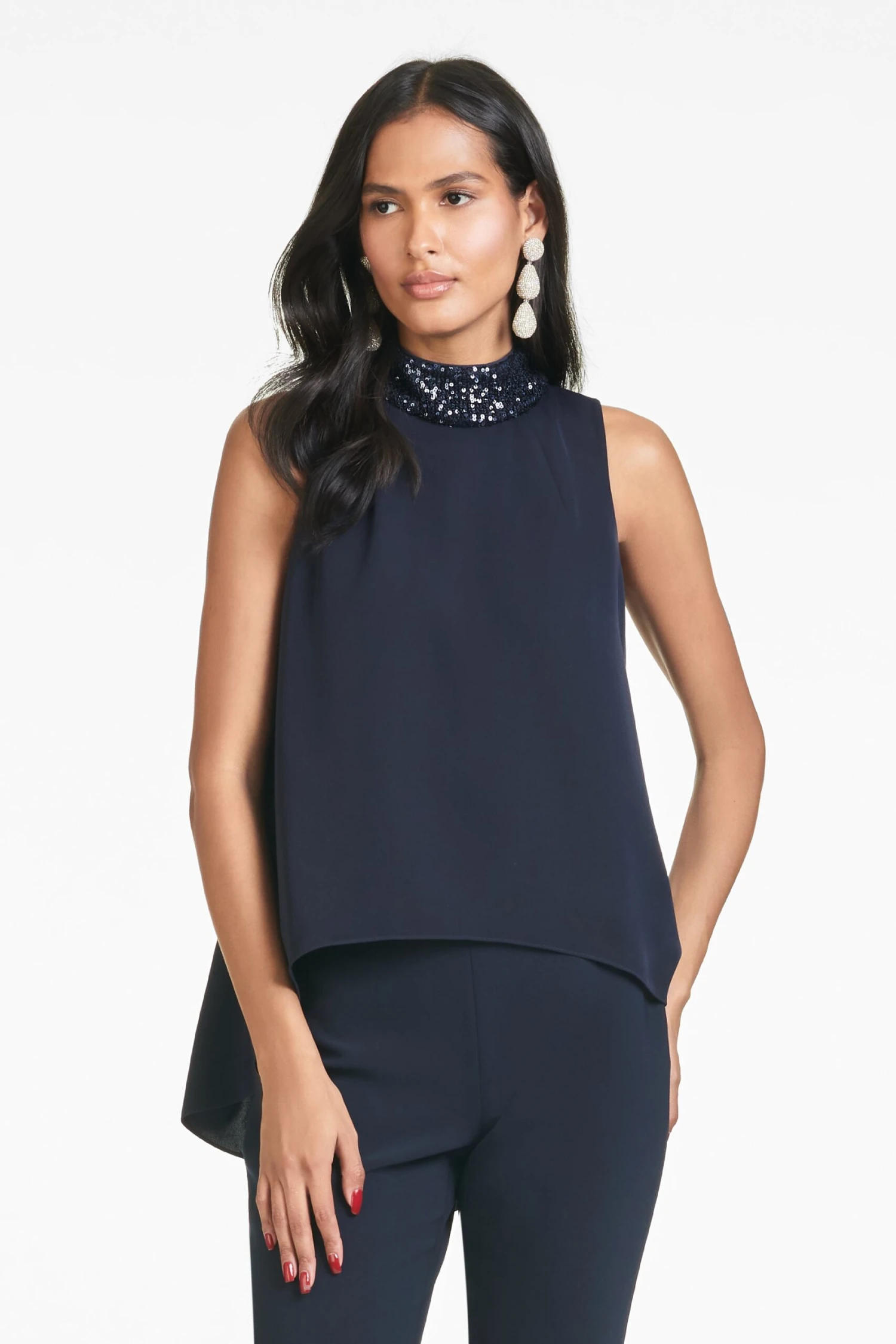 The Keaton tops and tails style is reimagined with tonal sequins at the neckline.Â