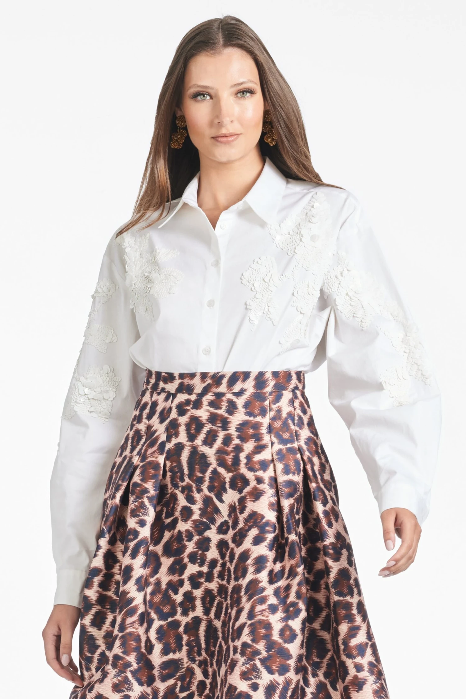 The Paradiso is an example of best of both worlds: a classic cotton summary down with intricately embroidered white sequin floral motifs throughout. She can be dressed up or dressed down, worn season after season, and one that will be a closet staple for years to come.